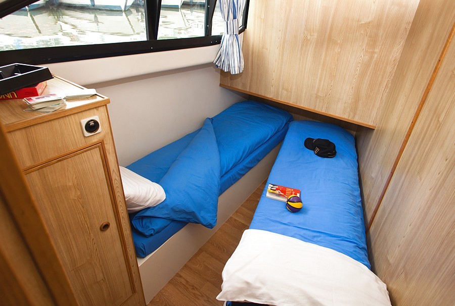 - cabine avant avec un lit double ou deux lits simples et salle de bain attenante